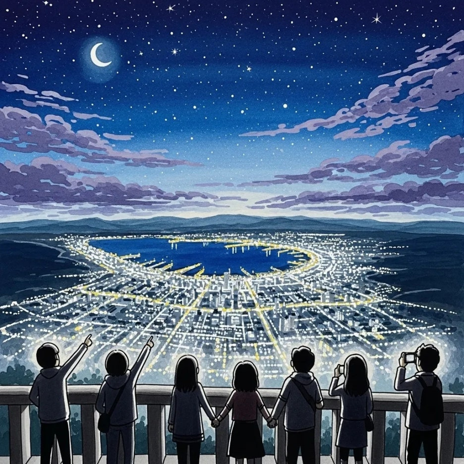 밤에는 하코다테 산에서 세계 3대 야경으로 손꼽히는 황홀한 도시의 불빛을 감상하는 것이 필수 코스입니다.