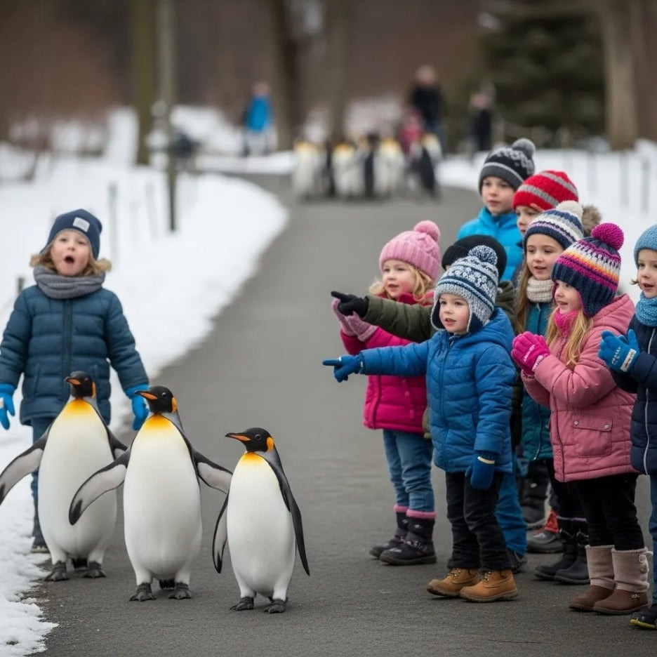 귀여운 펭귄들이 눈길을 산책하는 모습은 아이들뿐만 아니라 어른들에게도 큰 즐거움을 선사합니다.
